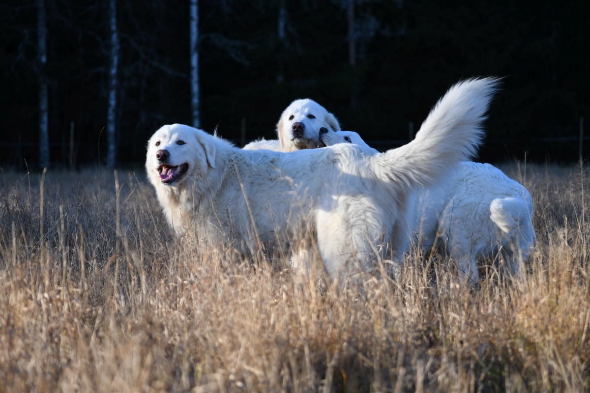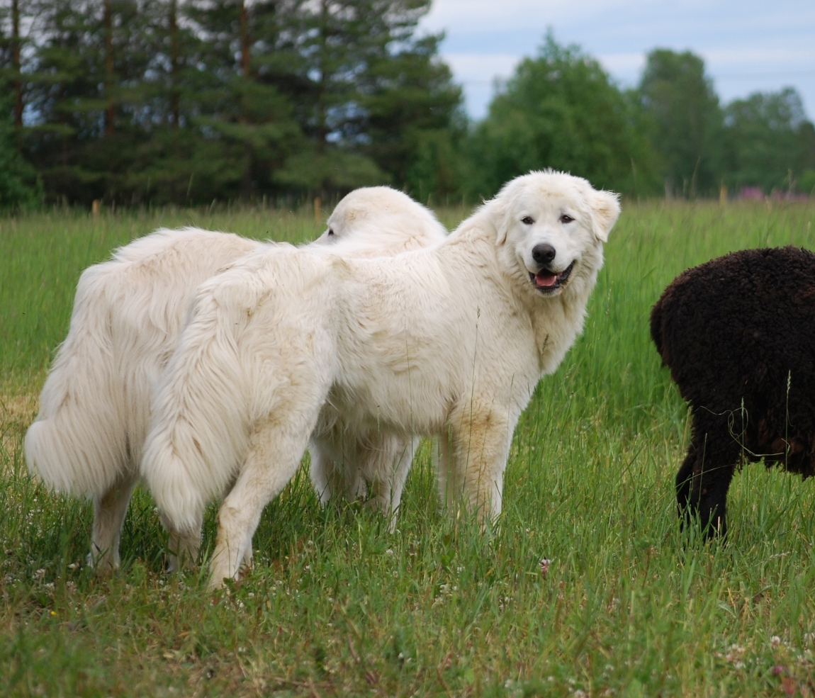 Kesäisin koirat vartioivat meillä laitumilla hevosia tai lampaita tai molempia.